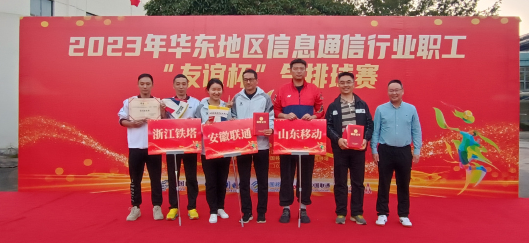 10月21日,由中国信息通信体育协会主办,中国移动通信集团浙江有限公司承办,中国邮政、中国电信、中国移动、中国联通集团工会,中国铁塔股份有限公司工会协办的2023年华东地区信息通信行业职工“友谊杯”气排球赛在浙江省台州市圆满结束。经过52场紧张、激烈、高水平的角逐:浙江移动代表队、浙江电信代表队、山东联通代表队、浙江联通代表队、云南邮政代表队、安徽移动代表队、山东邮政代表队、安徽邮政代表队分别获得前八名。经组委会评选:山东移动代表队、安徽联通代表队、浙江铁塔代表队获优秀组织奖;上海移动代表队、江苏铁塔代表队、上海铁塔代表队获精神文明奖;安徽电信代表队、江苏移动代表队、安徽铁塔代表队获团结友谊奖;江苏电信代表队、云南移动代表队、云南铁塔代表队获顽强拼搏奖;浙江移动代表队杨宗杉、浙江电信代表队诸葛霜分别获最佳男女选手奖;曲繁云、刘珺获最佳裁判员奖。
