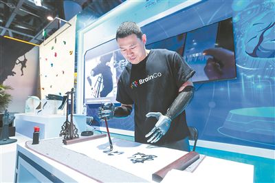 没有电线的连接,也不用头戴设备,仅凭大脑就能实现仿生手5根手指的独立运动和手指间的协同操作控制……在近日举办的第二届全球数字贸易博览会上,一位来自塔吉克斯坦的参观者请残疾人跆拳道运动员倪敏成用毛笔写下他的中文名字——阿布。