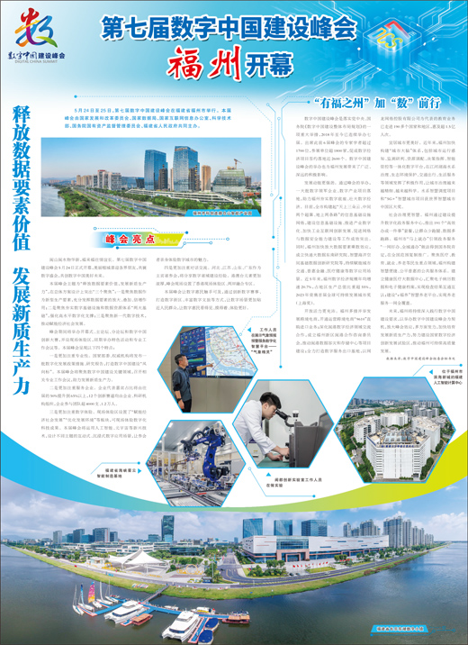 发展动能更强劲。通过峰会的举办,一大批数字领军企业、数字产业项目落地,助力福州夯实数字底座、壮大数字经济。目前,全市构建起“天上三朵云、中间两个超算、地上两条路”的信息基础设施网络,建设信息基础设施、推进产业数字化、加快工业互联网创新发展、促进网络与数据安全能力建设等工作成效突出。同时,福州加快放大数据要素乘数效应,成立快递大数据东南研究院、智慧海洋空间基础数据创新研究院等,持续赋能城市交通、普惠金融、医疗健康等数字应用场景。近5年来,福州数字经济规模年均增速20.7%,占地区生产总值比重超55%,2023年荣膺首届全球可持续发展城市奖(上海奖)。