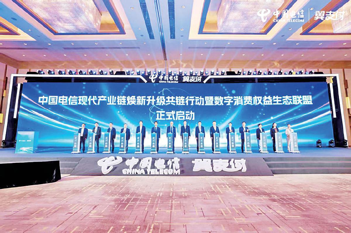 长期以来,中国电信翼支付积极践行央企社会责任,响应国家数字经济战略,将数字消费作为推动产业链焕新升级的重要引擎。本次大会,中国电信翼支付联合15家产业链伙伴代表,成立“中国电信现代产业链焕新升级共链行动暨数字消费权益生态联盟”,期待通过持续深化产业链生态合作,更好满足用户高品质生活需求,促进国民经济循环畅通。