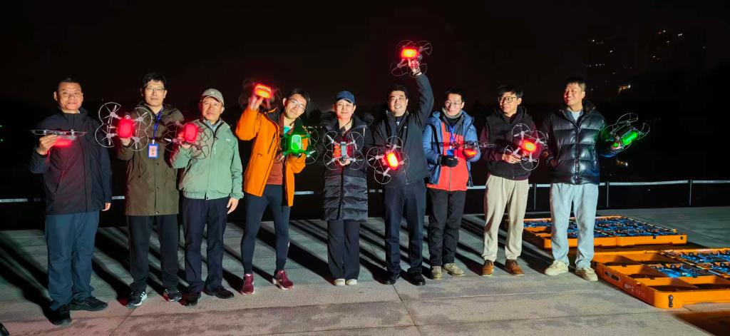天津低空经济公司工作人员在为无人机表演作准备。新华社发