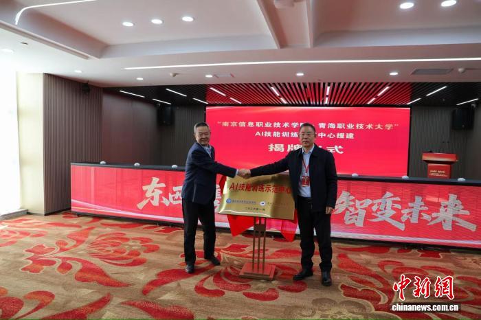 图为“南京信息职业技术学院·青海职业技术大学”AI技能训练示范中心援建项目揭牌。青海职业技术大学 供图