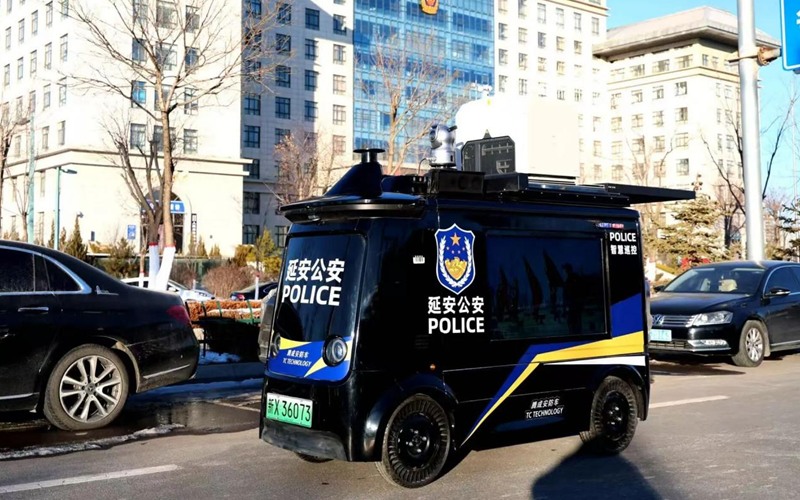 无人巡逻车上路。延安市公安局供图