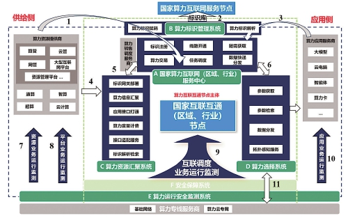 在统一标准方面,依托国家算力互联网(区域、行业)服务中心、算力标识管理系统、算力资源汇聚系统、算力选择系统、算力运行安全监测系统、算力安全保障系统六大核心系统,实现算力资源接口的标准化适配。其中,算力资源汇聚系统通过统一协议对接通算、智算、超算等异构算力资源;算力选择系统构建统一参数信息库,实现不同算力资源的性能、成本等指标横向对比,保障跨节点数据高效传输与调度。